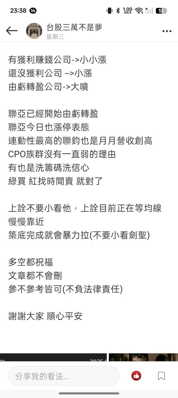 台股三萬不是夢 追蹤 好奇同學 Lv.18 04月29日 23:43 聯鈞 上詮 波若威 華星光 光聖 展開 +5 繼續閱讀 台股三萬不是夢 Lv. 18 粉絲: 追蹤 125 26P 19則留言 打賞 分享 留言 讚 取消 送出 查看 19 則留言... 留言...