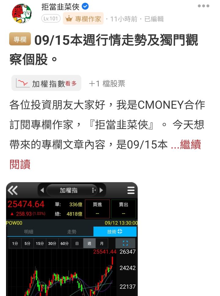 拒當韭菜俠 追蹤 專欄作家 Lv.101 09月15日 08:20 台積電領台股創高!「這檔」最強勢... 加權指數 展開 +2 新的一週新的開始,最大賭場上線啦⚡️⚡️⚡️ 繼續閱讀 52 3P 7則留言 打賞 分享 留言 讚