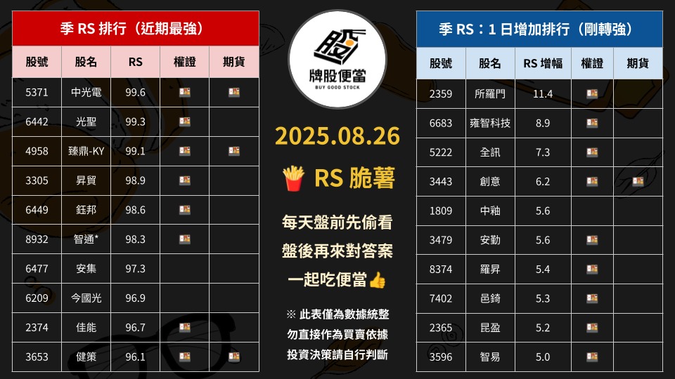 牌股便當|BuyGood 追蹤 好奇同學 Lv.23 08月27日 00:38 台股開低跌115點 廣達、聯發科跌逾... 智通* 雍智科技 中光電 光聖 臻鼎-KY 展開 +6 盤前偷看😝 繼續閱讀 77 6P 1則留言 打賞 分享 留言 讚