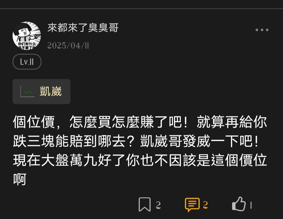 股票市場沒有所謂技術面、基本面、利多、利空,別再浪費自己的資金購買自稱專業分吸屍APP,買了絕對死更慘,今日賺了甜頭,明日賠了本金,得不償失啊!記住一個重點挑選好的股票低基期購入抱緊就對,讓你財富自由。 題外話:加入APP收費者一律一星加黑名單。 ...繼續閱讀