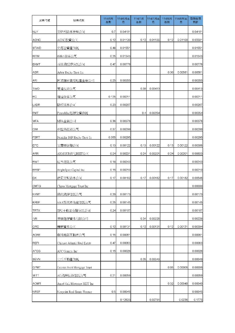 2025年Q4配息預估