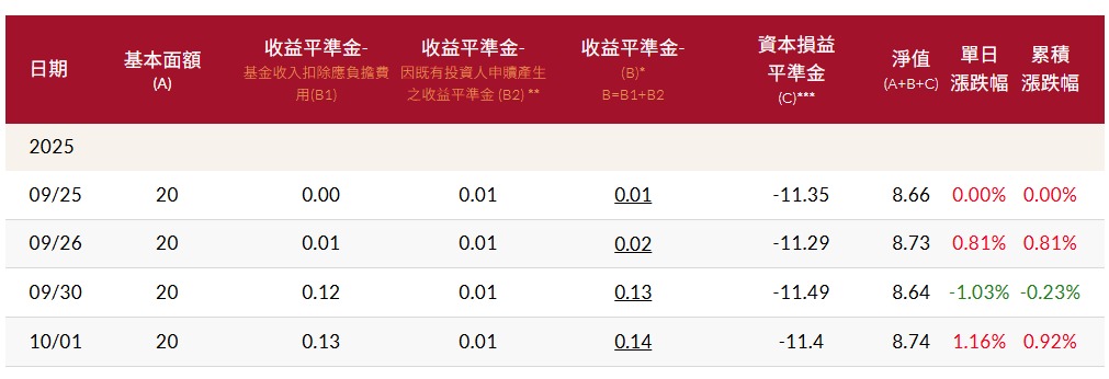 10/1官網公告總收益平準金0.14