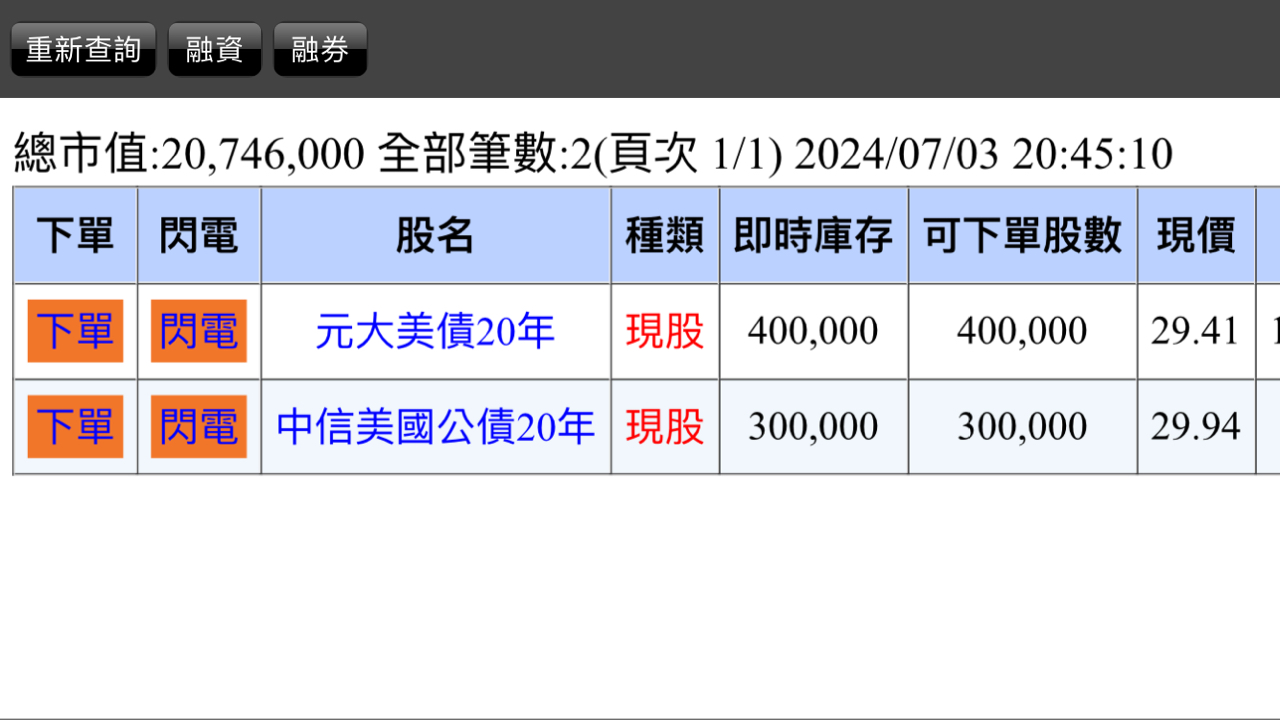 風. 追蹤 Lv.48 2024年07月03日 20:59 台新美A公司債20+ 元大美債20年 中信美國公債20年 展開 +3 昨天有點(牙起來) 買了600張台新美A 69 0P 8則留言 分享 留言 讚