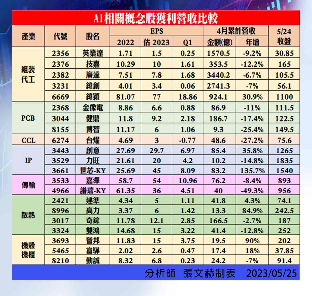 總編當莊 追蹤 Lv.44 2023年05月26日 15:20.已編輯 旺矽 聯陽 穎崴 大世科 邁達特 展開 +5 繼續閱讀 IC族群庫存調整,這2檔年初本益比低於10倍,為何現在異軍突起? | 市場焦點 | 證券 | 經濟日報 自今年以來IC族群全面潰敗,我們不僅看到營收一個比一個差,庫存一個比一個調整,整個IC族群都在愁雲慘霧當中,但只有兩家公司營收屢屢創高,獲利更是不斷的突破,在去年全球景氣低迷影響,電子業被庫存水位拖累 經濟日報 64 2P 0則留言 打賞 分享 留言 讚