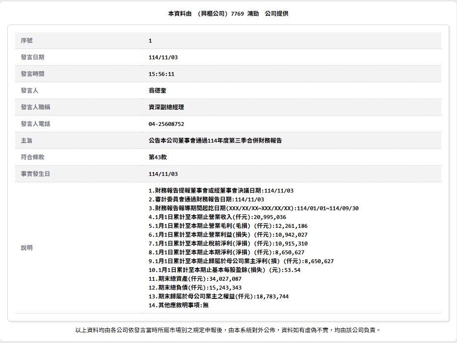 情報分享(嘉實前三季每股稅後4.70元)