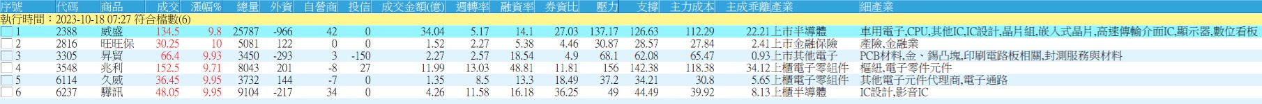 瓦吳❤️當沖 追蹤 熱心同學 Lv.16 2023年10月18日 07:30 威盛 驊訊 兆利 旺旺保 久威 展開 +5 10/18 XQ程式選股 --- 隔日沖 繼續閱讀 10 0P 0則留言 打賞 分享 留言 讚