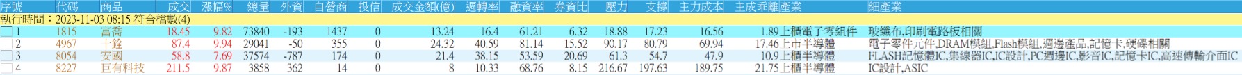 瓦吳❤️當沖 追蹤 熱心同學 Lv.16 2023年11月03日 08:41 富喬 十銓 安國 巨有科技 展開 +4 11/03 XQ程式選股 --- 隔日沖 繼續閱讀 11 2P 2則留言 打賞 分享 留言 讚