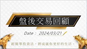 3月 2024年21 3/21盤後交易回顧|依據超簡單期貨交易策略,當沖操作請採「突破」策略,波段投資人請持續偏多思維 最後更新於  2024.3.21 14:19 瀏覽人次 : 571 撰文者: 林恩如 標籤:林恩如, 教學文, 盤後 收藏 圖/超簡單期貨電腦版 台指期今天(3/21)開高在20092點,一路震盪走高,終場收在20264點,大漲431點 (+2.17%)。 繼續閱讀...